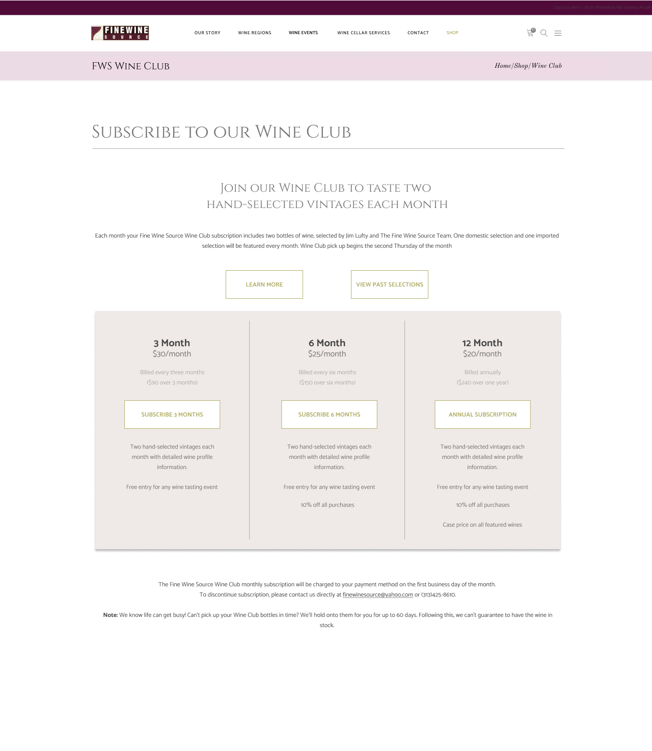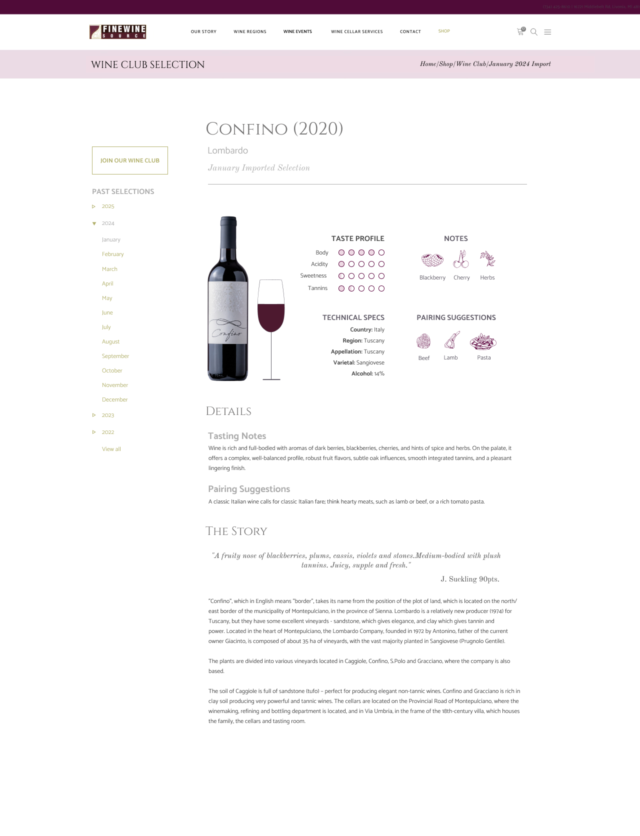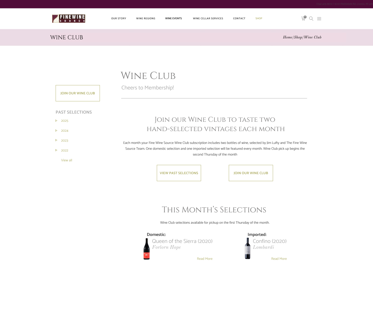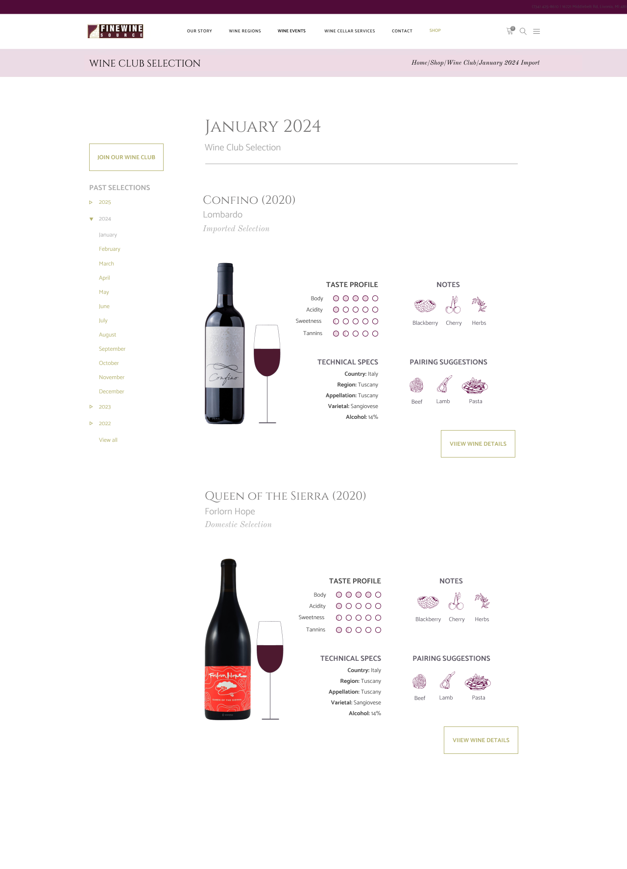 - A section dedicated to browsing past wine club offerings that can be filtered by year, and further by month